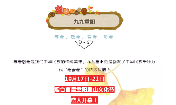 這個重陽節(jié),快帶著父母,來塔山參加煙臺首屆重陽登山文化節(jié),體驗休閑祈福、健康養(yǎng)生之旅,帶給他們一份最溫情的回憶吧!