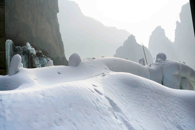 通天峽的冰掛之所以能在八百里太行山乃至華北地區聲名鵲起,主要原因是在于它的原生態、純天然、純自然性。十里冰掛的形成和十多處冰瀑奇觀的形成,是大自然賦予通天峽的獨特瑰寶。每到立冬之后,原生態系統從虹霓河上千平米的流域面積冰封千里的山河之下滲透到巖石的底層冒著熱氣滲透至巖石表層,遇零下幾十度的河谷風冷吹寒凍,形成掛在巖石裸露上的各種形狀的冰掛!十分壯觀!被人們譽為“八百里太行山最壯美的冰掛奇觀”。今天就隨我們的鏡頭去領略——八百里大太行賦予通天峽的壯觀冰雪奇緣吧!